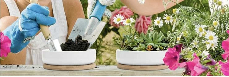 Succulent 4" Pots With Bamboo Tray's, 4 Pack Ceramic Plant Pots NEW, Plants Not$12Deerfield Beach, FL