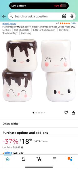 Marshmallow Mugs Set of 4 Cute Marshmallow Cups Cocoa Mugs 6OZ for Kids Hot Chocolate Gifts for Kids Women Christmas "Mothers Day" Cute Mug$10Miami, FL