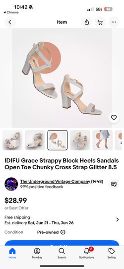 IDIFU Grace Strappy Block Heels Sandals Open Toe Chunky Cross Strap Glitter 8.5 $40Miami, FL