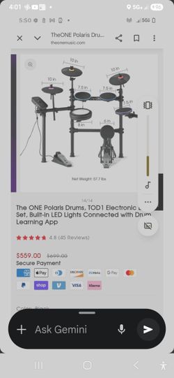 The One Poloris Electronic Drum With Led Lights set Upand Learning App$250Seattle, WA