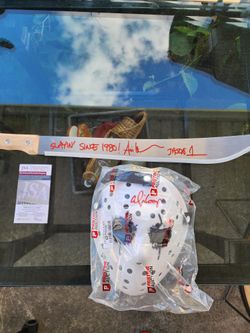 JASON MASK AND MACHETE AUTOGRAPH $350Somerville, MA