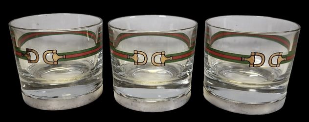 RARE Set Of 3 Vintage GUCCI Old Fashion Barware Logo Cocktail Bar Glass Tumbler$500Port St. Lucie, FL