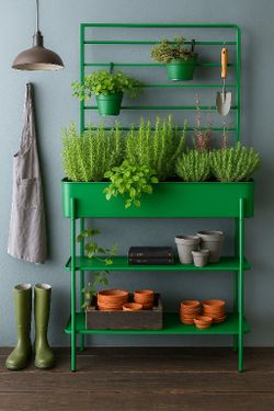 Metal Raised Garden Bed with Trellis and Drainage Holes- Elevated Planter Box w/ 2 Tier Storage Shelves and 3 Planters, 62'' Outdoor Plant Rack with F$45Pomona, CA