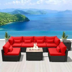 Outdoor Patio Furniture Set Wicker Rattan Patio Conversation Set with Fire Pit Table Sectional Sofa $600La Mirada, CA