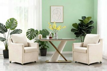 set of 2 Linen Dining Chair with Casters Modern Storage Seat Design for Relaxing Upholstered Arm Chair,$280Pomona, CA