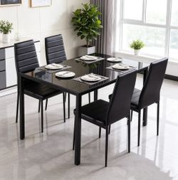 5 Piece Dining Table Set 4 Chair Glass Metal Kitchen Room Breakfast$160Chino Hills, CA