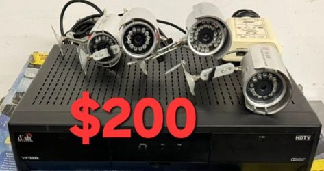 DVR and four wired surveillance cameras.