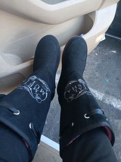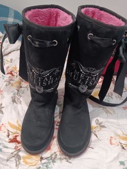 Womans Black Boots With Black Ribbons On Each Side SIZE 10$20Victorville, CA