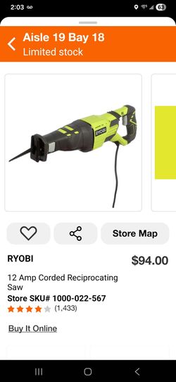 12 Amp Corded Reciprocating Saw$60Hawthorne, CA