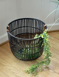 BLACK BAMBOO BASKET WITH LEATHER HANDLES $20Park Ridge, IL