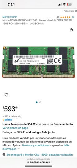 16 GB DDR4 Micron 2666MHz$75Atlanta, GA