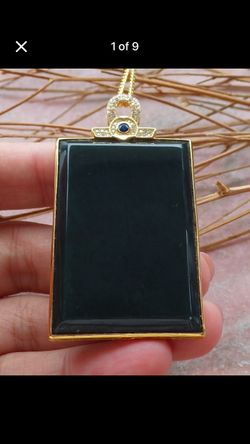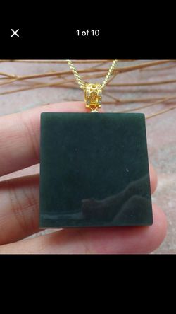 Certificate Jade Sterling gold Silver 925 Hetian Nephrite Black Green Rectangle pendant$299Pasadena, CA