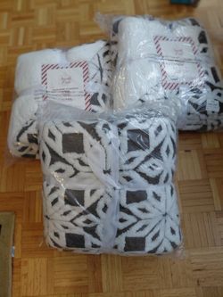 3 Mink To Sherpa Reversible Throw Blanket 50x60 , 100 % Polyester Grey And White Snowflake Design on One Side And White Sherpa Material On Other Side.$10Spfld (long), MA
