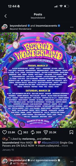 Beyond Wonderland Tickets $400Lakewood, CA