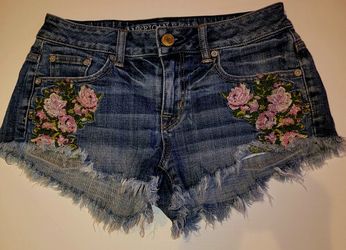 American Eagle - Denim Jean Shorts With Embroidered Flowers Size 02$15Kent, WA