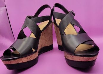 Franco Sarto Seneca Black Strap Cork Wedge Sandals Women's 8M$35Kent, WA