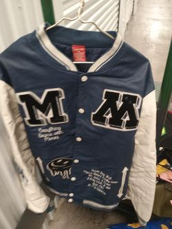 White & Blue Badass Letters Men Jacket $80Marysville, WA