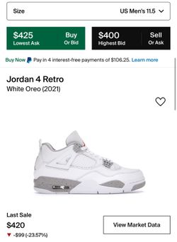 Jordan 4 Retro “White Oreo (2021)”$240West Palm Beach, FL
