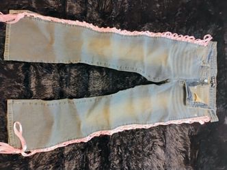 IamGia blue jeans with pink ribbon ties laced down side cutouts on both legs . Super cute . . Size 5$99Lucas, TX