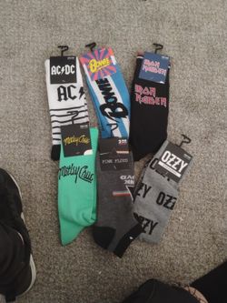Awesome Set Of Classic Rock Socks 6 Pairs AC/DC Iron Maiden Motley Crue Pink Floyd Ozzy Osbourne David Bowie BRAND NEW$20San Marcos, CA