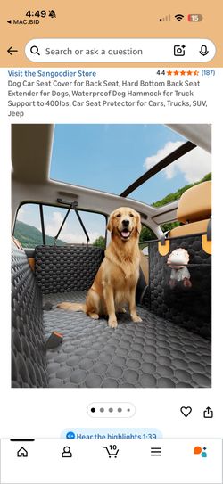 Dog Car Seat Cover for Back Seat, Hard Bottom Back Seat Extender for Dogs, Waterproof Dog Hammock for Truck Support to 400lbs, Car Seat Protector for $60Pompano Beach, FL