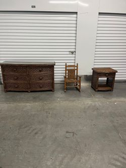 Wicker bedroom set Dresser with glass top & matching nightstand with rocking chair #bs24$500Richmond, TX