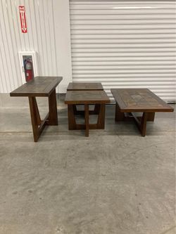 Solid wood coffee table set with slate tile top. set of four #s118$500Richmond, TX