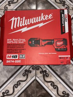 M18 18V Lithium-Ion Cordless Short Throw Press Tool Kit with 3 PEX Crimp Jaws (2) 2.0 Ah Batteries and Charger$600The Bronx, NY