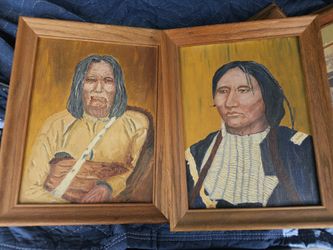 Vintage 1968 Kiowa Native American Chiefs Santank and Ato-ete Oil Paintings 9x12 framed, Set of 2$50Corpus Christi, TX