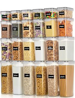 Food Storage Containers with Lids, 24 pcs Plastic Kitchen and Pantry Organization Canisters for Cereal, Dry Food, Flour and Sugar $35Los Angeles, CA