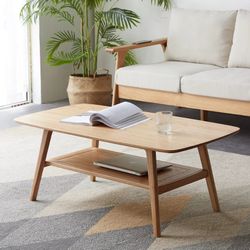 Wood Coffee Table - 100% Solid Wood- 2-Tier Coffee Table with Storage for Living Room, Eco-Friendly Finish, Easy Assembly (Natural, 31.49" D x 19.68" $60Chino, CA