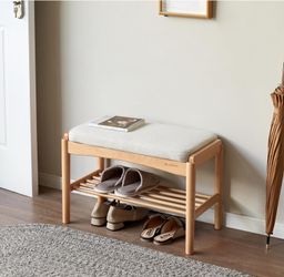 Solid Wood Small Shoe Storage Bench - Modern Shoe Rack Bench with Soft Cushion, Entryway & Small Spaces Organizer (Natural, 23.62 ")$50Chino, CA