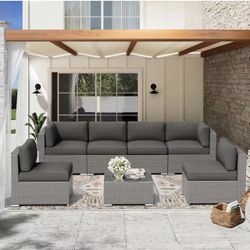 Outdoor Patio Furniture Set 7 Piece Outdoor Sectional Sofa Grey Wicker Conversation Sofa Set with Coffee Table and Cushions-Grey$280Upland, CA