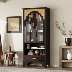 31.5 inch Vantage Brown Display Cabinet with Tempered Glass Door and Exquisite Carvings$120Montclair, CA