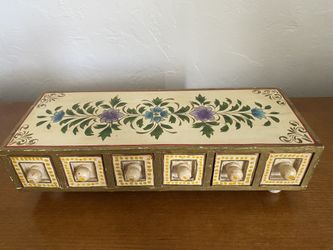 Hand-painted wooden miniature chest of drawers or jewelry box. 15”L x 6”W x 4”H$35Oakland Park, FL