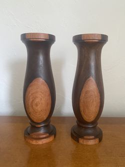 2 Vintage Hand-Turned Two Tone Wooden Vases$40Laud By Sea, FL