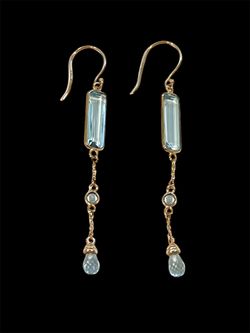 14K Yellow Gold Emerald/Briollete Blue Topaz Earrings By “Hirajule” (Cross Posted )$199El Cajon, CA