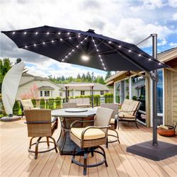 11 ft. Solar LED Round Aluminum Cantilever Outdoor Umbrellas with Base Stand in Navy Blue$250Chino, CA