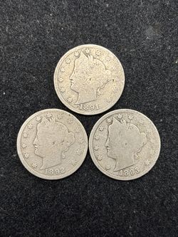 Set 1891 to 1893 Liberty "V" Nickels -- EARLY & KEY DATE COINS! — SHIPPING AVAILABLE!$18Bolingbrook, IL
