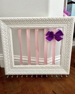Adorable Girls Hair Bow And Jewelry Accessory Holder Has hooks on the bottom for necklaces or jewelry or hair ties. Hangs on the wall. In good con$15Fullerton, CA