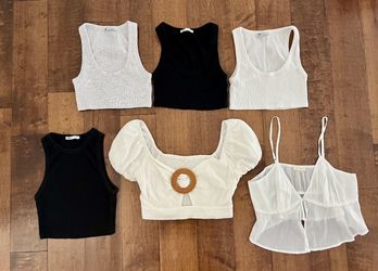 Zara Black white gray crop top bundle lot size Medium Small Lot of 6 cute crop tops from Zara, Illa Illa and La Hearts. The 4 ribbed crop tops are f$25Fullerton, CA
