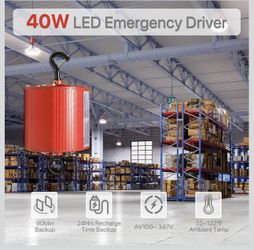 Controlador de emergencia LED de 40 W, UFO LED de alta bahía de luz de batería con control remoto, tiempo de emergencia 90 minutos, entrada de CA 100-$100Buford, GA