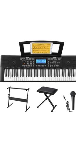Donner 61-Key Electric Piano Keyboard with Microphone, Stand & Stool - For Beginner/Professional