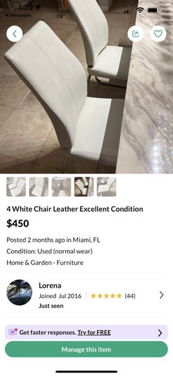 4 White Leather Chair From Dorado $399Miami Beach, FL