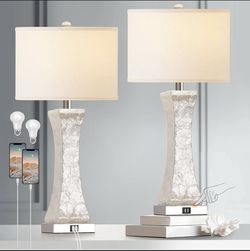 Set Of 2 Beige Color Touch Control Table Lamps, 28-inch Tall With USB Charging Ports . LED Bulbs Include. New In Original Box $69Clovis, CA