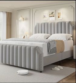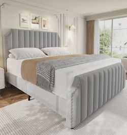 **Clearance Sale/Elegant Light Gray Velvet Queen Bed Frame With 50.2" Headboard. No Box Spring Needed. New In Original Box. $160Clovis, CA