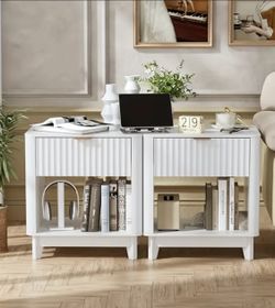 Set Of Two Modern Fluted Nightstand Side With Drawer And LED Light New In Original Box.$120Clovis, CA