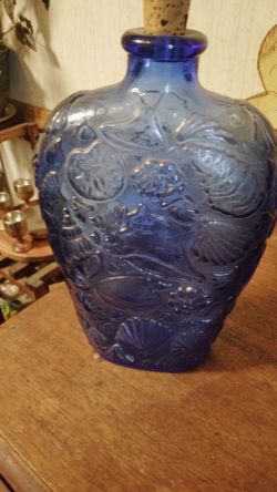Vintage Cobalt Blue Glass Bottle / Vase With Seashell Design $35Kathleen, GA