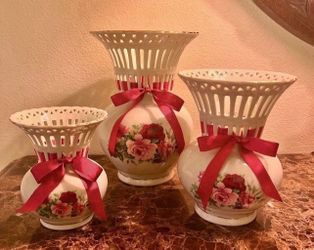 Victorian Rose Set of 3 Porcelain Lattice Vases Formalities by Baum Bros$20Orlando, FL