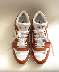 PRADA Men’s Downtown leather sneakers Orange/White Size US 10 $425$425Queens, NY